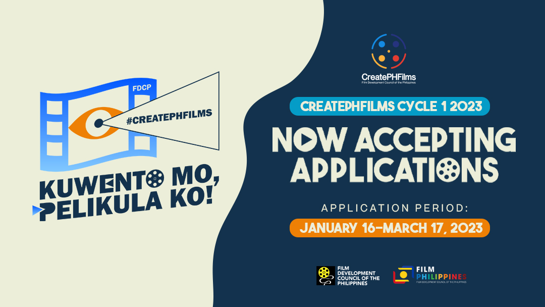 MANILA, PHILIPPINES — CreatePHFilms, the local funding program of the Film Development Council of the Philippines (FDCP) officially opens its new cycle this 2023 to provide funding to Filipino filmmakers and producers for the development and production of their films.
